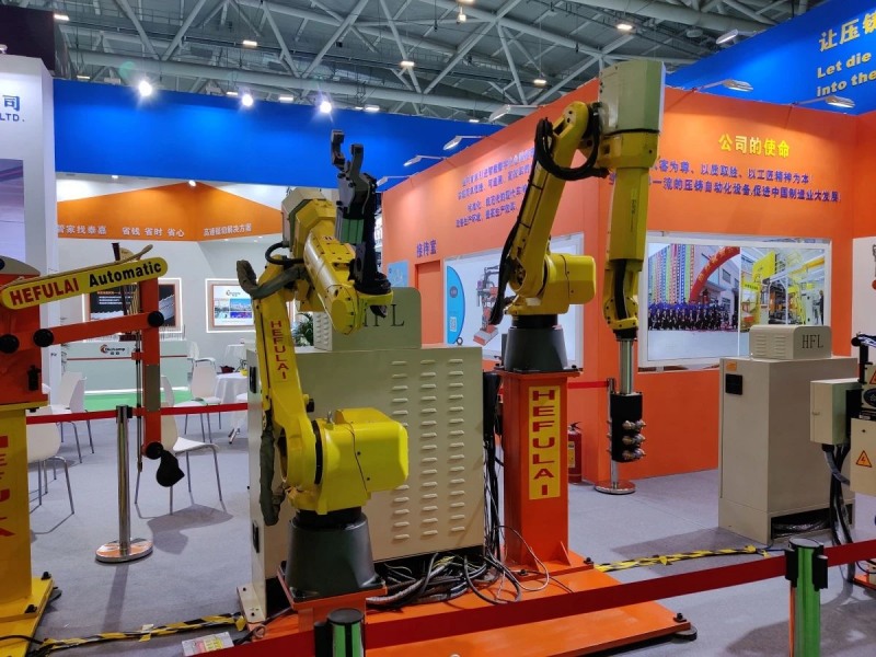 热室伺服喷取一体机 本届展会,东莞合富莱展示了多款伺服节能压铸机械手,如五连杆式高速给汤机、连杆式单伺服沃铃喷雾机、连杆式伺服取出机、热室伺服喷取一体机等,以及喷雾、取件机器人压铸岛系列,全方位满足用户需求。 杨炳荣先生强调:“我们将产品质量视为战略高度,高品质的设备不仅为用户创造价值,还为合富莱树立了良好的行业口碑。我们的设备以故障率低、定位精准、动作速度快、使用寿命长而受到用户的青睐。”据了解,合富莱机械手的减速机、电器元件、伺服电机、轴承、PLC等主要零部件及控制系统均采用国际知名品牌的产品,结合实用性及人性化设计以及多年的加工及装配经验,全力打造高品质设备。