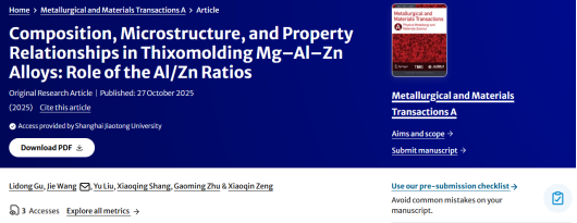 伯乐装备赋能科研,助力上海交大发表半固态镁合金领域SCI论文